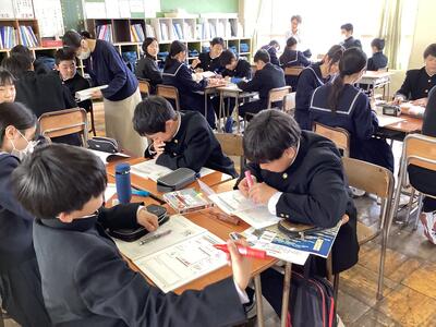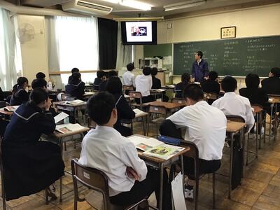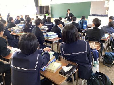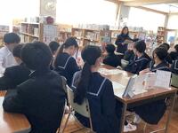 今日の授業は学校図書館で行い、学校司書から本の配置や借り方等について説明があり、読み聞かせもしてくださいました。本離れが進んでいる昨今ですが、学校図書館を活用し、本ならではの良さを味わい、心を豊かにしてほしいと思います。