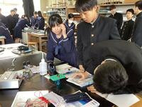 食塩や砂糖などの溶質が電解質か非電解質か確かめた後、塩化銅水溶液の電気分解を行い、水溶液の中で起こる変化について実験しました。変化の予想を尋ねたところ、根拠をもって答えていました。