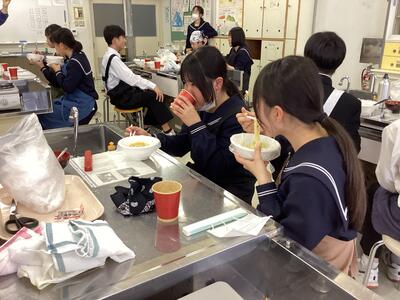 1年生はすべてのクラスで、この調理実習を行いました。この学習を機会に、お家でも、災害時の備えや食事等について、ぜひ話し合ってみてはどうでしょうか。