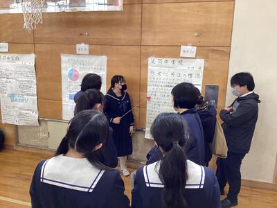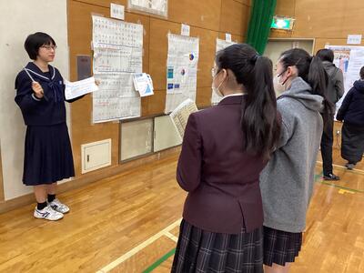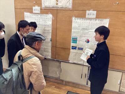 足羽中の6人の生徒は、大人からの質問に自分の考えを伝えたり、シンガポールで生活したことのある他校の中学生から実体験をもとにしたヒントをもらったり、また、高校のポスターセッションに参加して別の分野に興味をもったり等、たくさんのことを得てきました。