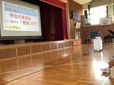 校長先生からは、夏休みの振り返りや今後の見通しと、「地域の中の足羽中」についてのお話がありました。