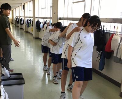 今日は、35℃超えの猛暑日だったので、各教室で取り組みました。